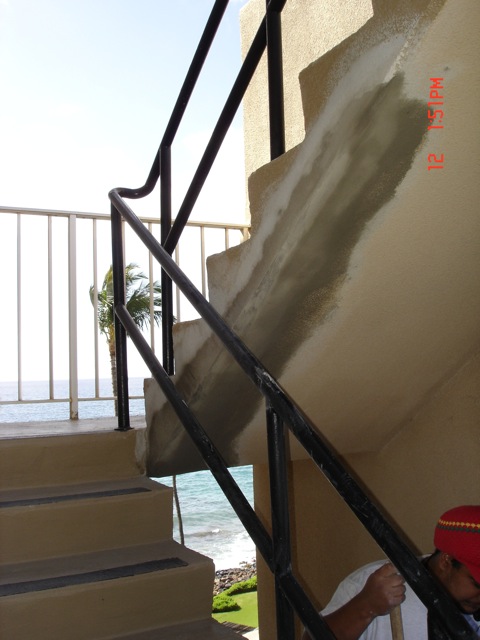 Hale Pau Hana's Beachfront location made it suceptible to corrosion and spalling.