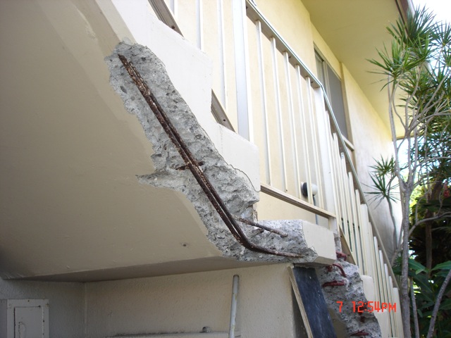 Hale Pau Hana's Beachfront location made it suceptible to corrosion and spalling.